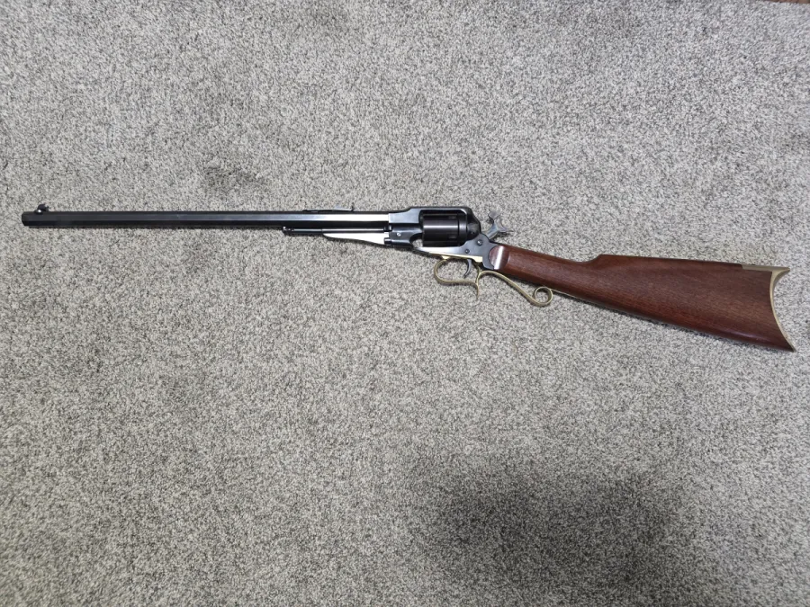 Looking to sell my uberti 1858 revolving rifle, with kisrt .45 colt cartridge conversion cylinder.