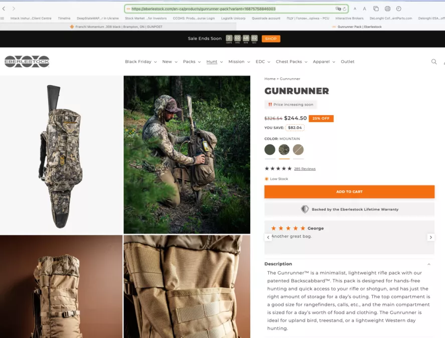 7. Bonus: Eberlestock Gunrunner with Built in rifle scabbard back pack + 2 extra side pouches. Now cost about $400CAD