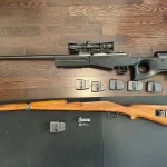 Also comes with clamp on muzzle brake(Hubertec), picatinny scope rail(Swiss Gun Factory), burris 2-7x scout scope in Leupold QRW2 rings, 5 mags, and the original stock, hardware, sling, and soldier tag.