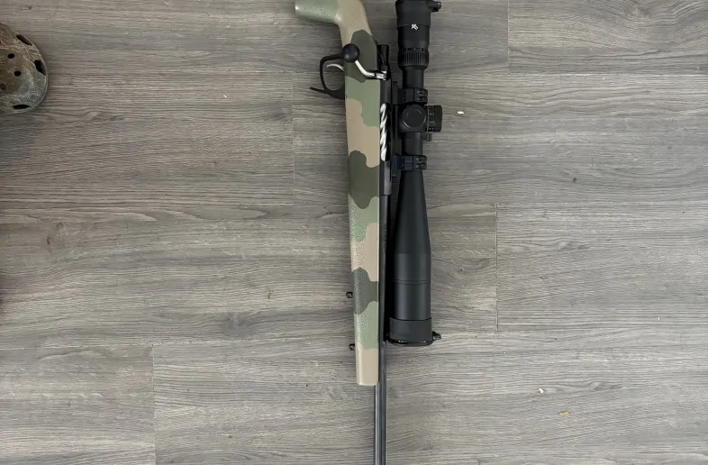 McMillan A3-5 stock with 2 way adjustable cheek rest, shims for length of pull and a heavy fill, molded in Sonoran camo