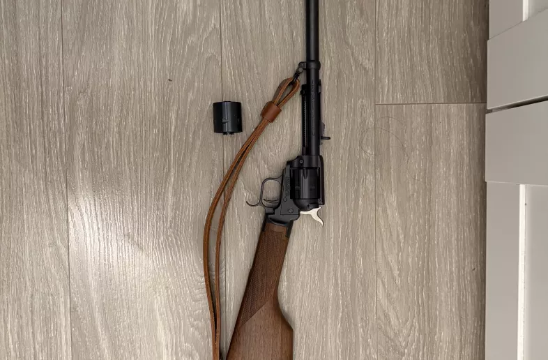 Slightly used heritage Rough Rider. Price comes with the rifle, sling, and two cylinders(22wmr and 22lr).