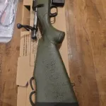 Green with Black web Stock very rare . Beautiful rifle. Sub-Moa Accuracy. Excellent rifle for hunting or shooting. Base comes with Rifle as scope was removed .
