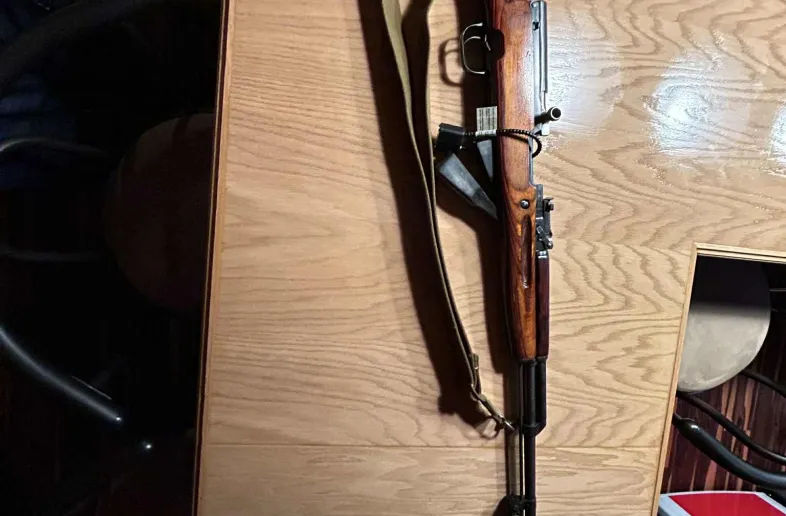 Russian SKS, 1950 production. Excellent cosmetic and mechanical condition, approximately 40 rounds fired. This one has a beautiful Laminated stock, matching serial numbers (for collectors). Comes with sling, bayonet, stripper clips, and comes with 16 boxes of ammunition ($200 retail of 120 non corrosive, plus 200 corrosive).
