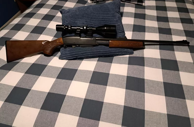 Remington 7600 (pump action) in 308 win with original magazine, scope mount and Bushnell scope 3-9×50 . This rifle is in excellent condition, no wood marks, no rust and very accurate (setting at 100 yrd). Ammunition available in 165gr and 180gr (165gr Norma bonded used for the target picture). Asking $1000 for the rifle and scope and $50 for ammo boxes (full boxes, Norma bonded or Federal fusion or Federal Trophy bonded tip). PAL is a must and not interested in trades.