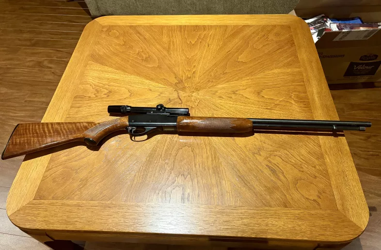 Remington Fieldmaster Model 572 pump action .22 calibre in very good condition. Tubular magazine. Accepts 22 short, 22 long and 22 long rifle ammunition. Comes with a 3x-7x Custom 22 scope and a quantity of ammunition. Not willing to ship at this time.