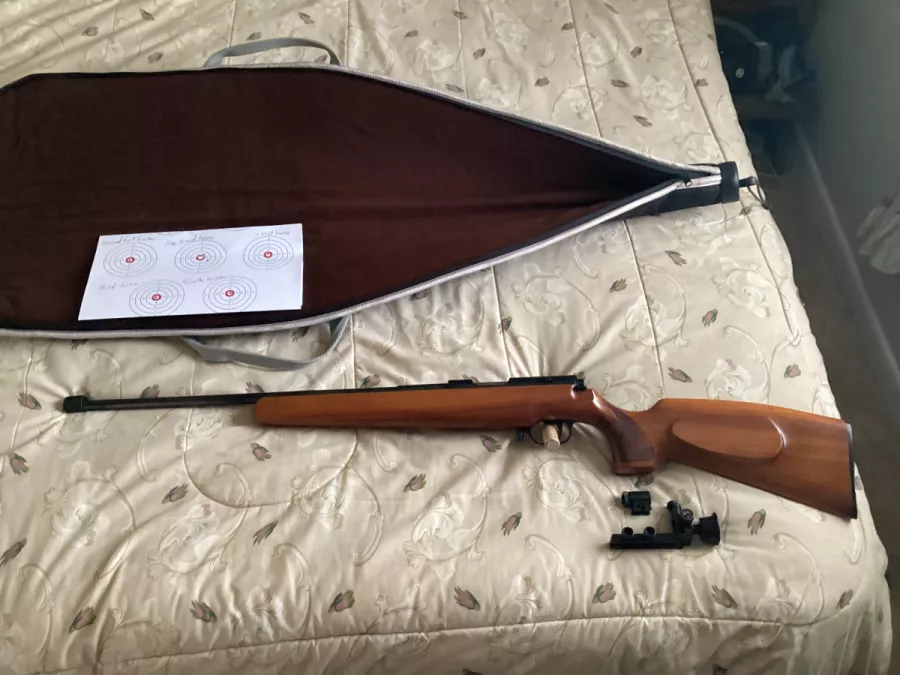 Offering a Very very nice Walthers 22Lr. Single Shot Sporter Target Rifle, Has a trigger plunger That sets the trigger Pull down to a few Ounces, See target,, center target to dial the scope in then all 10,s at 50yds ,,Comes With a Quality set of iron target Sights ,and a Japan 4 Power TV Scope that’s very clear, Mailing with Buyer