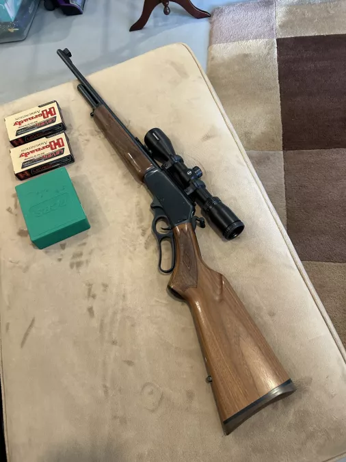 308 Marlin Express Lever Action 21” barrel 3-9-40 Bushnell Trophy scope. C/W 2 boxes of shells 1 set of dies. Gun is excellent condition. $1850 firm. No shipping.