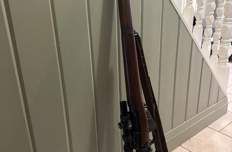 Lee-Enfield No.4 Mk1 (T) sniper rifle in good shape. Original T-model rifle. Includes a Bushnell Banner scope (not original military scope). Bore is in good condition with strong rifling. Shows normal wear consistent with age. Solid collector/shooter piece. Located in Huntsville, Ontario. Valid PAL required. Asking $3,500. Priced to sell.