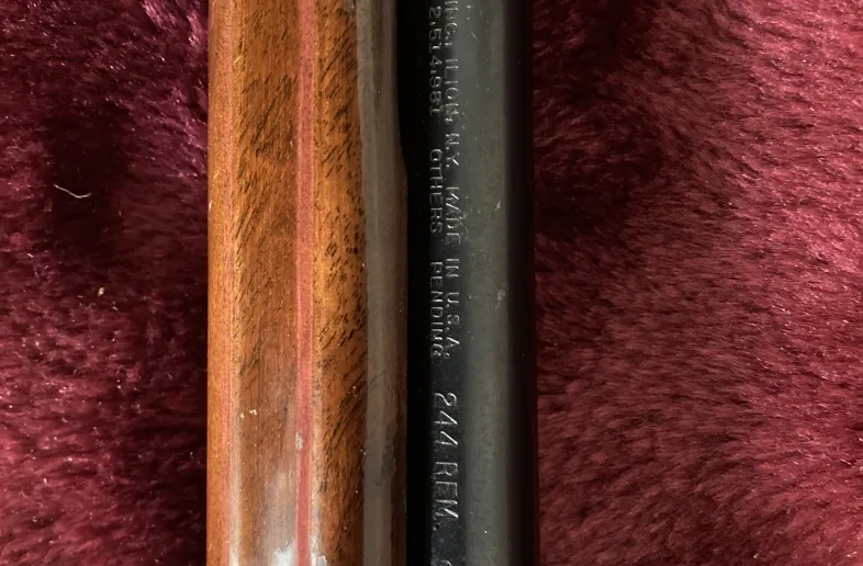 Remington 740 chambered in .244 . This rifle is in good condition , no cracked or heavy marks in wood , usual hunting dings and scratches . The metal is in good condition as is the bore . I used this rifle for coyote hunting this past winter and it functioned perfectly . It will include the original rear sight and push in sling swivels and sling . It does have the original .244 magazine . If you know you know the .244 is same as the 6 mm Remington only difference is the rifling twist . This rifle shoots surprisingly accurate . Nice old rifle that functions as it should .
