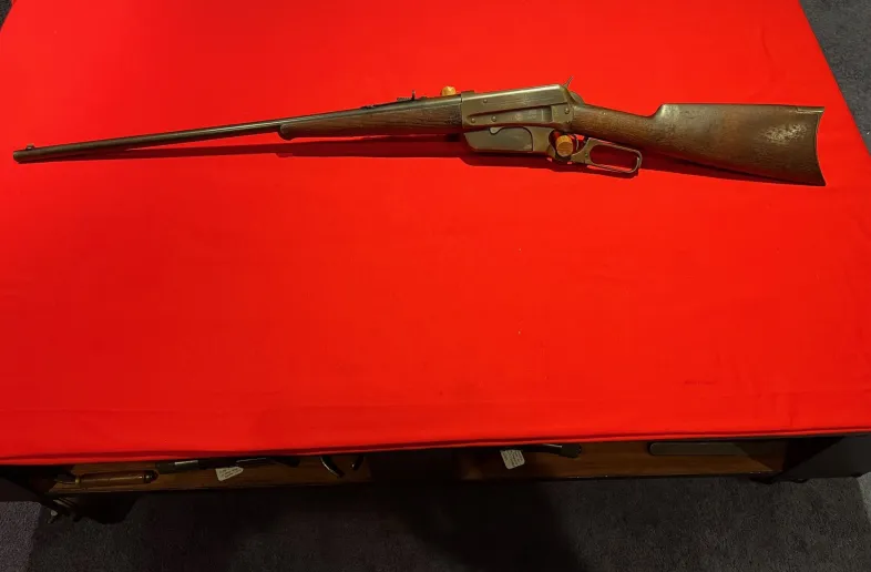 Here is a Winchester 1895 in 40-72 which is the hardest calibre to find in the 1895 model. The finish is a blue plum colour, The wood to metal fit is perfect. Sights are original. The bore is very good to excellent which shows a nice shiny bore with no dark spots. The rifle dates 1905. Shipping is available