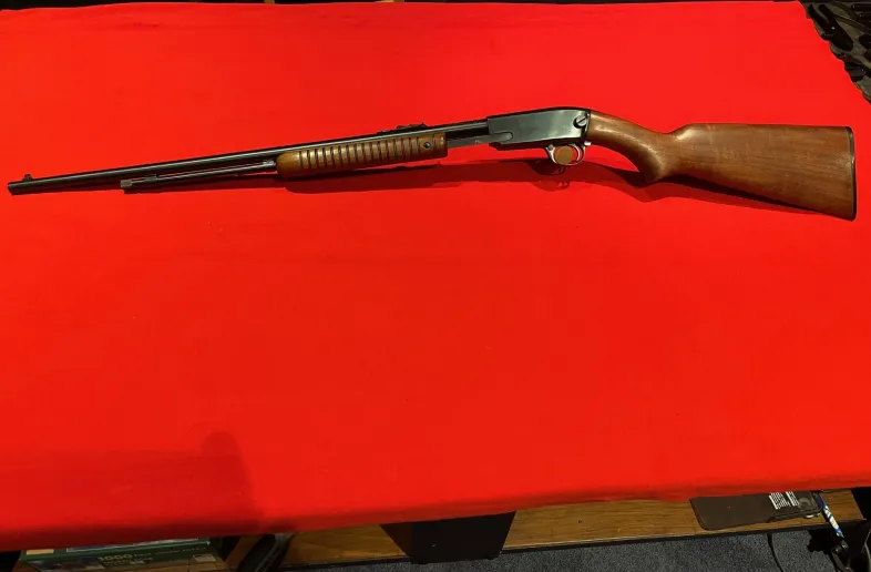 Here is a Winchester Model 61 made in 1958. The gun is mint with the only wear mark on the slide arm as in picture. Wood is excellent. Marked for S/L/LR. As good as you may find. Additional photos if needed. Shipping available.