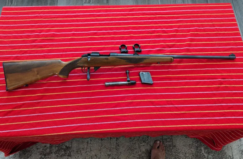 Zbrojovka Brno 465 in very good condition. Comes with rings and magazine. Fingernail sized chip has been repaired on the butt, can be seen in pictures. 19 rounds and some brass available for local sales. Shipping available and extra. Thanks.