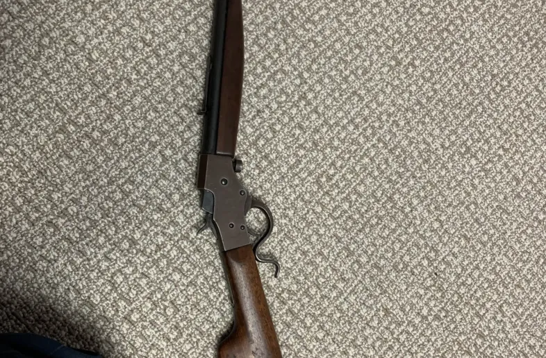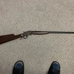 Steven’s Favorite .32 long RF takedown. Missing front sight and rear sight ramp. Butplate cracked with piece missing. Not really interested in shipping