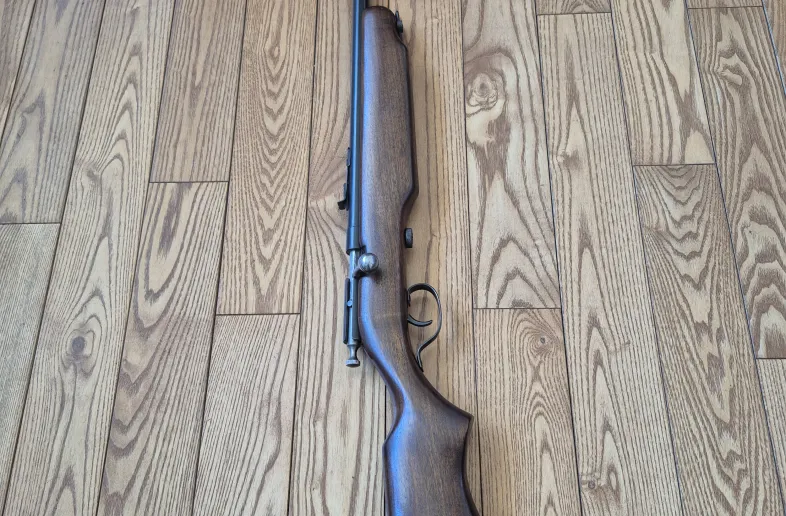 Cooey mod 75 .22cal. No cracks or bings on the stock no rust or pitting on the barrel in good condition for the age not interested in trades.
