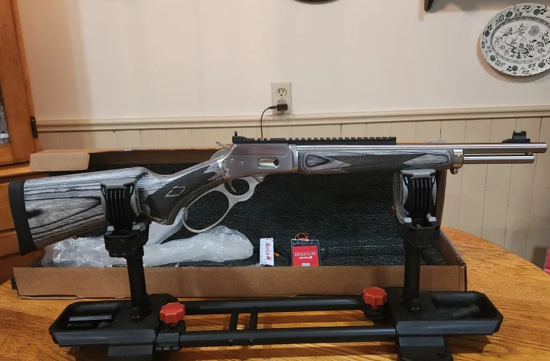 Ruger-Marlin 1894 SBL. .357/.38sp. Stainless steel and laminate stock with not a mark on it. Perfect condition. Shot around 150 times. Beautiful gun.