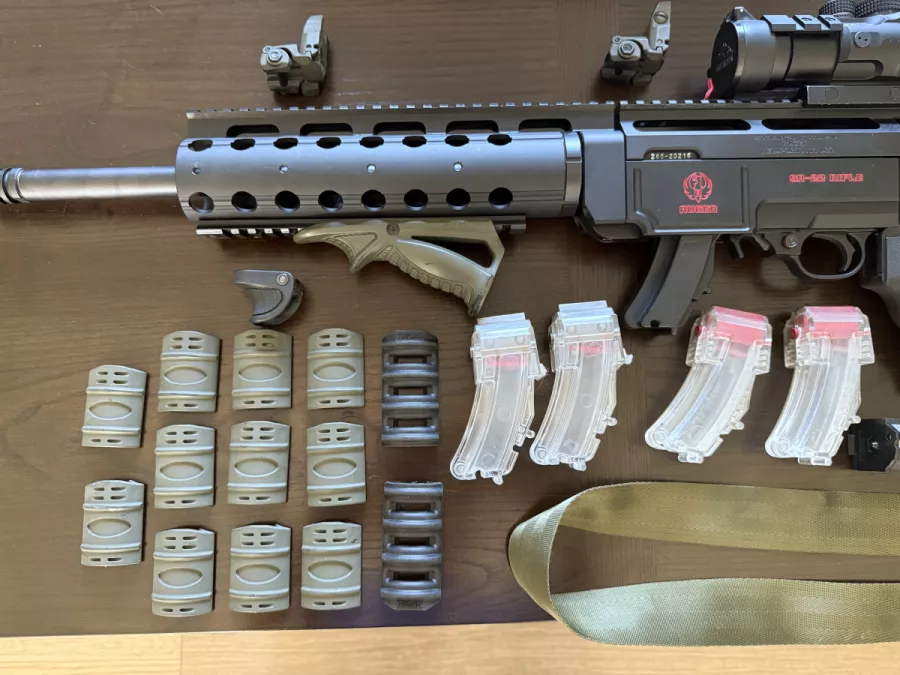 Mint condition SR-22 rifle with low round count. Full aluminum body and adjustable stock. Scope not included.