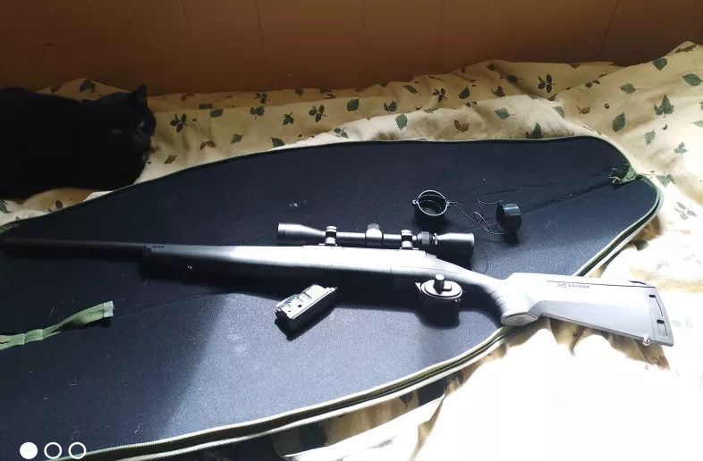 winchester axis 243, out hunting for about an hour. Like new. comes with a case , weaver scope