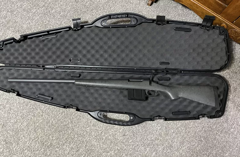 The trigger is a Trigger time adjustable single stage trigger and has a 5 shot clip. Reason for selling have two many 7Mags !