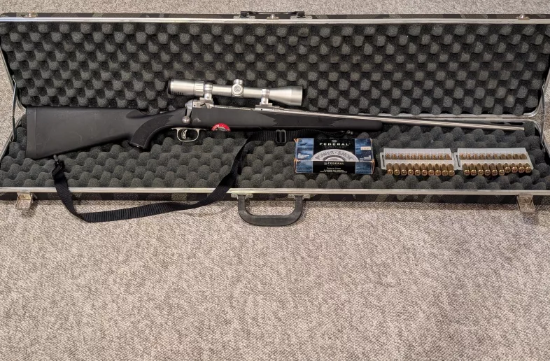 Savage 116 stainless in 338 Winchester magnum, comes with some ammunition and the hard case.