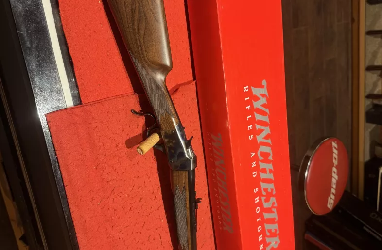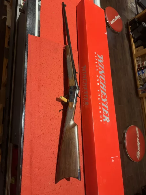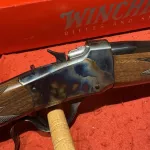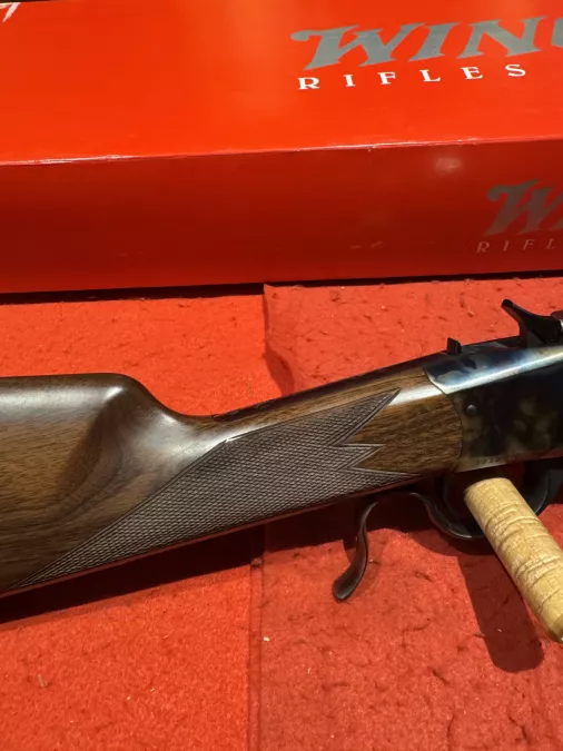 Winchester 1885 , Hunter Low Wall in .17 Mach2 , 24” barrel , unfired in its original Box, Case hardened with beautiful colors on receiver and crescent Butt Plate , 9 full boxes of ammo , $2350