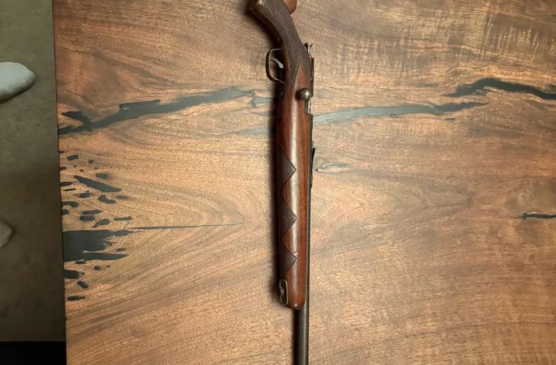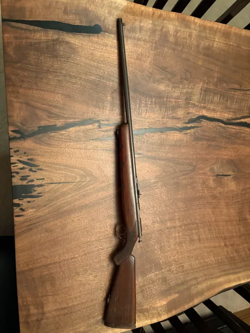 NO TRADES. Cooey model 82 WW2 training rifle single shot .22 LR. Bolt is C ^ Canadian military marked as is the receiver ring. No peep rear sight. Stock looks like it’s been gone over and “customized” or recontoured and “custom” checkered. Metal finish is mostly patina, bore is excellent with shiny sharp rifling. Rifle shoots and extracts properly. Extractor is intact. Nice rifle to restock to put back to military configuration or shoot and enjoy it the way it is. $250 FIRM PLUS ACTUAL SHIPPING. PAL will be validated online with the CFC. Local pick up may be available in Oshawa at the 401.