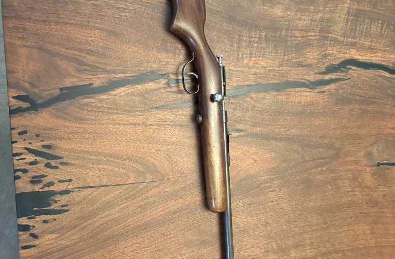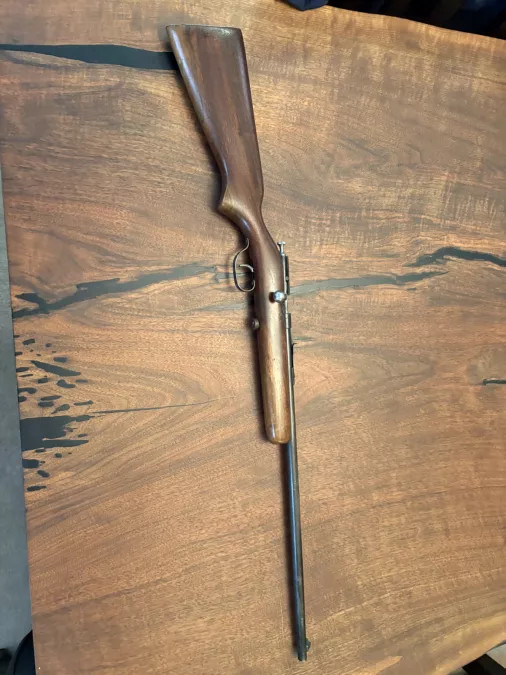 NO TRADES. Cooey Ranger marked single shot .22. Barrel is 22 inches long with an excellent bore. Rifle shoots and extracts A1. Bluing shows some wear in spots from age. Walnut stock is in good shape with no cracks. Looks like a quick amateur refinish on the stick at some point. Sights are intact. Factory steel buttplate. Priced right - shoot it, refinish it, or rob the bolt from it for a spare. $150 FIRM PLUS ACTUAL SHIPPING. PAL will be validated online with the CFC. Local pick up may be possible in Oshawa at the 401. Can ship through C Post once they get sorted or with another courier.
