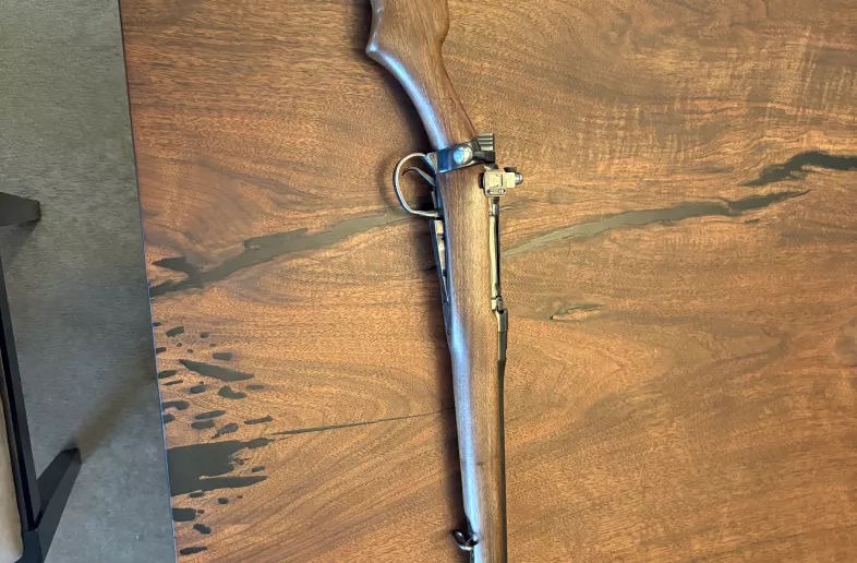 NO TRADES. EAL rifle .303 made post WW2 for NATO, Canadian Rangers, and civilian use. CA marked knox form, 21 inch barrel with an excellent bore. Side of receiver is drilled and tapped - possibly for the NATO side scope mounting. Steel Lyman peep sight is installed. 5 round magazine. Numbers match on bolt and receiver. Butt pad is a “white line” replacement. Factory sling swivels. Bluing looks good on it. Rifle shoots and functions A1. Lots of history on these Canadian made .303 variants. Serial number is 60XX if it helps in your research. $500 FIRM PLUS ACTUAL SHIPPING. PAL will be validated online with the CFC. Local pick up may be possible in Oshawa at the 401.