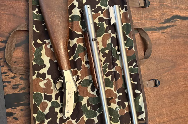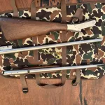 NO TRADES. NEF Handi Gun SB2 combo in nickel finish. Ducks Unlimited combo with carrying case, 22 inch 30-30 barrel with sights and 22 inch 20 gauge barrel 2 3/4 and 3 inch chamber with fixed Mod choke. Bores are excellent and the action lock up is tight. Wood is in excellent shape with minor handling wear. Factory butt plate. Rifle barrel is drilled and tapped for a scope mount. Metal looks very good but has a few minor freckles in the finish as shown in pics that seems to be common with these guns. The gun show very little use. Case is in excellent condition. $750 FIRM PLUS ACTUAL SHIPPING. PAL will be validated online with the CFC. Local pick up may be possible in Oshawa at the 401. Happy to ship by C Post once they get straightened out or by another courier.