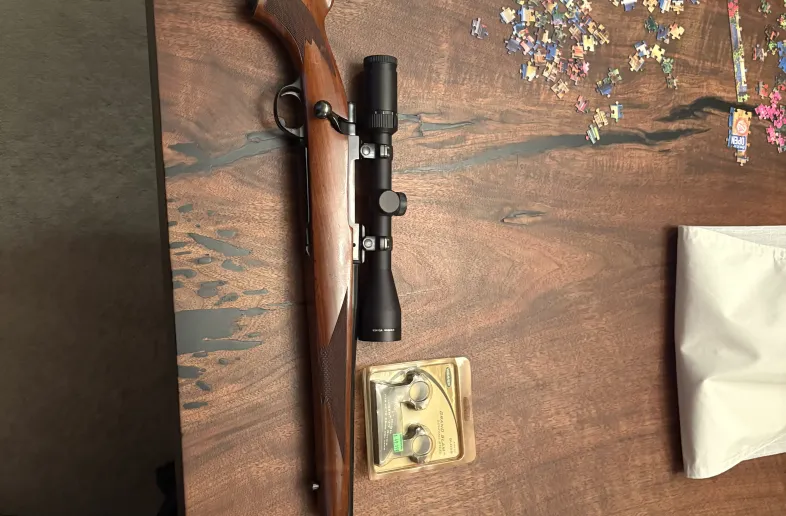 NO TRADES. 1974-manufactured Ruger 77 in .243 calibre. 22 inch barrel with excellent bore. Mauser style controlled round feed action. Bluing is very good showing light handling wear. Walnut stock has the original finish still in good shape with no cracks or chips. Factory red butt pad. Rifle shoots A1 and is accurate. Comes with a Weaver 3-9x40 scope in Ruger rings mounted, as well as a new pair of steel Weaver manufactured Ruger style high rings. Nice quality old school made in the USA steel and walnut hunting rifle ready for coyotes or deer. $1100 FIRM PLUS ACTUAL SHIPPING. PAL will be validated online with the CFC. Local pick up may be possible in Oshawa at the 401.