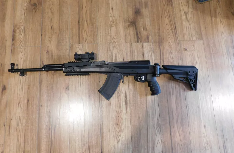 russian sks ati folding stock with space for accesories arch angel removeable mag vortex sparc red dot great bore functions as it should