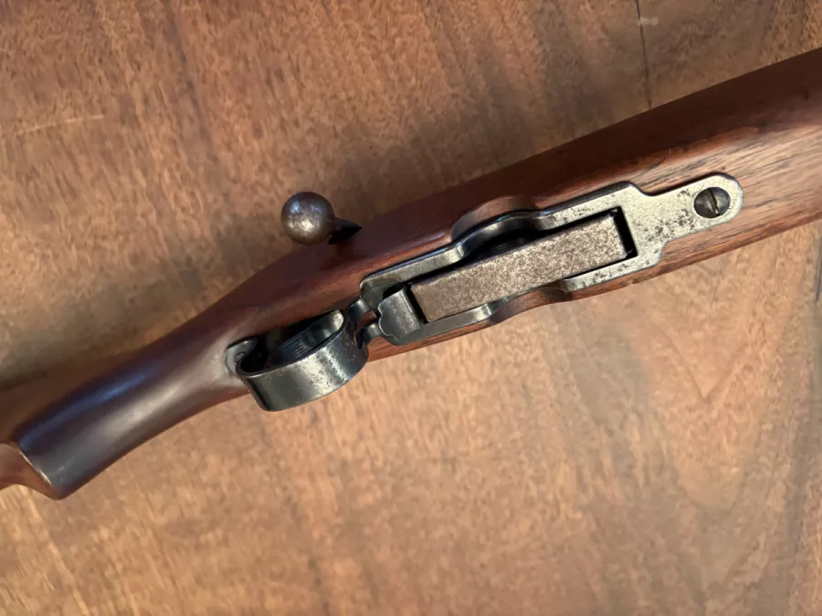 NO TRADES. Savage model 340A in .30-30. 21 inch barrel with factory sights (rear is stamped Dockendorf). Bore is in excellent shape and it shoots and functions A1. Metal exterior has some surface rust flecks that could be cleaned up with some oil and fine steel wool. Wood is in good shape with nice grain to the walnut and no cracks. Factory buttplate has a couple of marks in it. Buttplate white plastic spacer has shrunk with age. Front barrel band screw is too long so it has a plastic washer in place. Either shorten the screw or get a replacement or leave it as is. The magazine is included. Nice old compact gun to take hunting or an easy refinish. $385 FIRM PLUS ACTUAL SHIPPING. PAL will be validated online with the CFC. Local pick up may be possible in Oshawa at the 401 or happy to ship C Post once they get sorted or another courier.