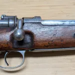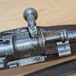 This rifle is built by a rare seen maker SUHL in 1917. Serial number mismatched. Barrel number is remarked matching. No finish on receiver which is correct for some WWI GEW98. Barrel and trigger guard blued finish in good condition. No rust or heavy pitting found. Wood was applied varnish and a Spanish flaming bomb cartouche on buttstock. No crack or major damage I can see. Imperial German cartouche still visible. I haven’t shot it but action works well. Bore is worn with some rifling left. It is pretty clean though. Comes with origin leather sling. See all details in Flicker album. It represents very interesting history and uncommon transition period example. Asking $1750, shipping on buyer’s expense.