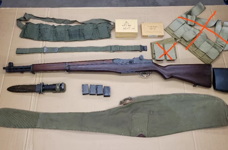 1955 Springfield Armory M1, LMR barrel, Danish bayo, Bandoleer, Korean war kit
