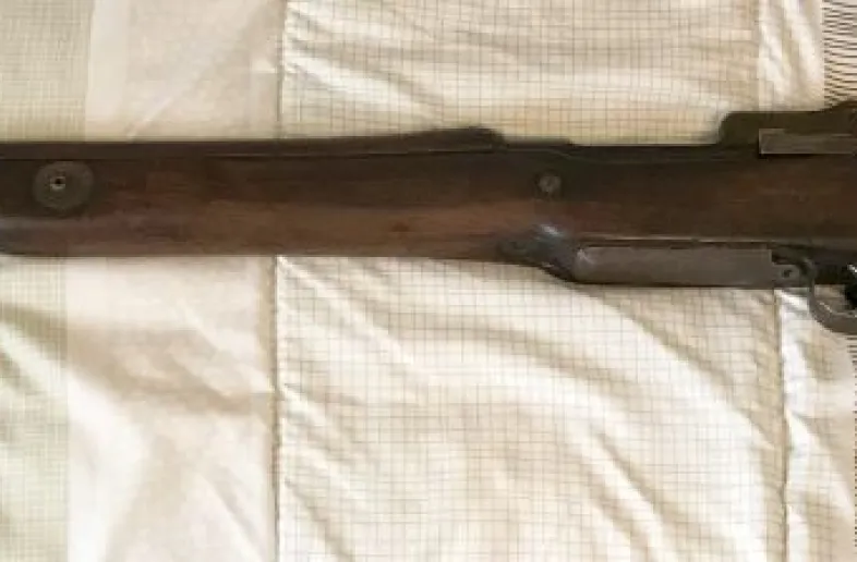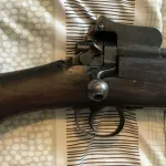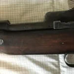 I bought this rifle at a gun show in Brockville Ontario about 35 years ago. At the time it was coated in a thick layer of varnish or shellac. Everything on the rifle, including the bolt was frozen in shellac. But I liked the look of the rifle and bought it anyway. I put it away in my gun safe and initially, every few years, I’d take it out and consider removing the shellac. But I never did for fear of damaging the rifle with a shellac removing solvent. I took it out early this year and was surprised that the action now worked and the heavy coating of shellac was gone. The rifle is shellac free except for the fold down adjustable sight which is still coated in dark shellac or varnish. I’ve found three numbers that look like they were serial numbers. On the receiver is the number ERA 395752. (ERA stands for Eddystone Remington Arms). On the bolt is the number 339899. On the Butt Plate is the number 350206. The action operates easily and the internal magazine still has a strong spring. The rifling is worn but still there. Please feel free to forward any questions to me. I’ve never fired this rifle and I won’t mail it to a buyer. Any sale would have to be completed face to face. I accept cash only and a PAL is necessary.