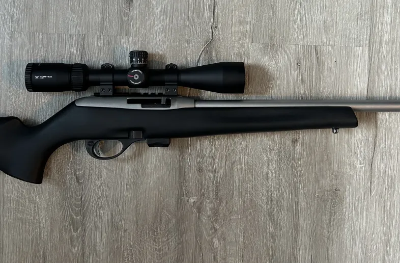 Stainless 597, has volquartsen hammer and a vortex diamondback tactical 3-9 in warne aluminum rings. Can sell for 475 with no scope/rings.