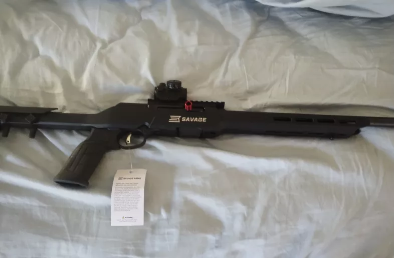 New Savage 22 Precision MDT chassis 22 LR new. With threaded muzzle. thick barrel, red dot.