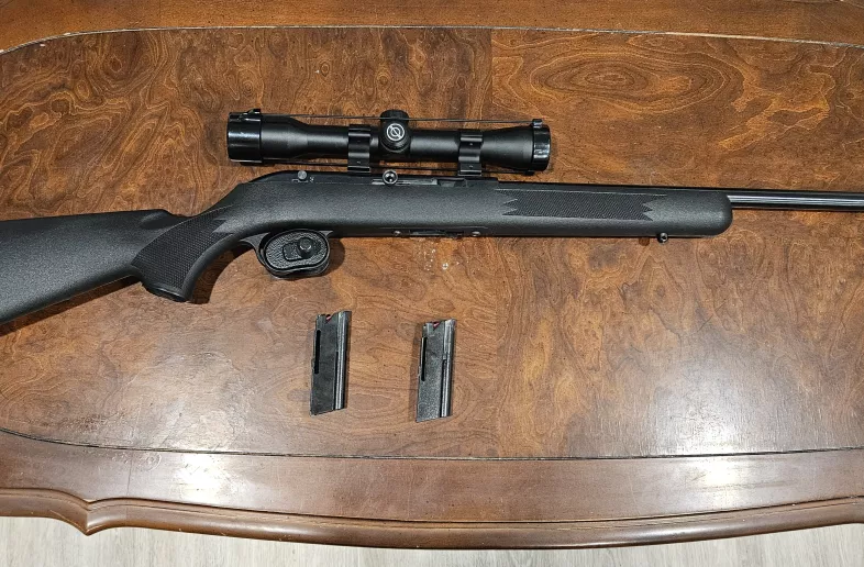 Savage 64, Simmons 4x32 scope with covers, and 2x 10 round mags included.