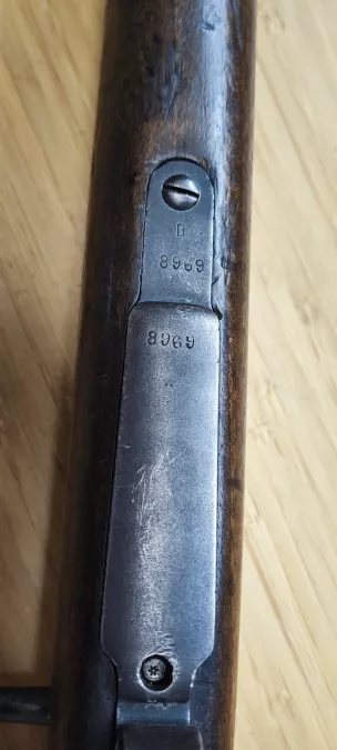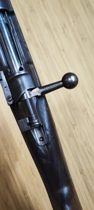 It’s a good condition Spanish Mauser 1893 used in Spain Civil War. Built by DWM Berlin. Caliber 7mm Mauser. Metal in good shape, no live rust or extensive pitting. Receiver crest worn but still visible. Wood has some handling markings, no major damage like crack or large chip. Beautiful walnut grain. Serial number matching except bolt. I haven’t shot it but manually cycles well. Bore is dark worn, some rifling left. See all details in Flicker album. Asking $750, shipping on buyer if needed.