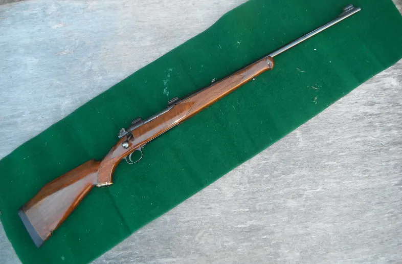 Pre 64 model 70 Winchester, 257 Roberts rechambered to 257 Weatherby. Receiver Drilled and tapped for side mount.