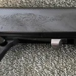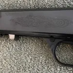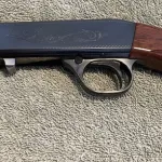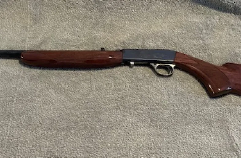 Browning SA-22 takedown is a 22 LR Semi Automatic (2019 I believe). Beautiful wood! You load it through the hole in the side of the stock once you have opened the plug on the end of the stock. And the shells eject straight out of the bottom of the action. The rear sight flips down when not in use so it doesn't catch on anything. Takedown makes it very compact for back packing or hiking. Has been a safe queen and needing to downsize my collection. Thanks for looking.