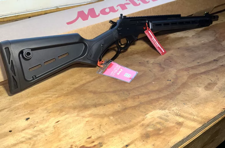 Brand new Ruger-made Marlin 1895 Dark Series. Chambered in .45-70 Government with a 16.17” threaded barrel. M-LOK polymer stock with cheek riser, ghost-ring rear sight, and fiber-optic front with tritium ring. 5+1 capacity, satin black finish.