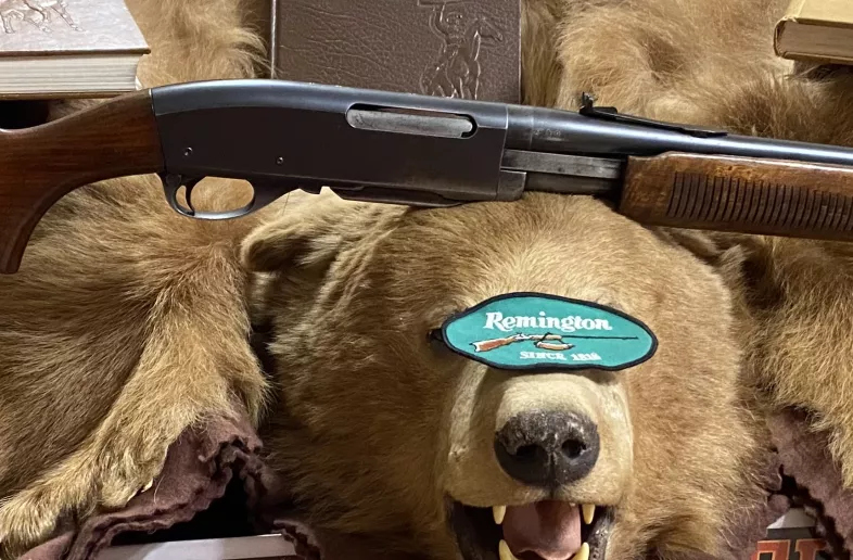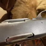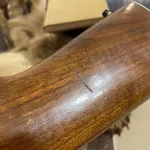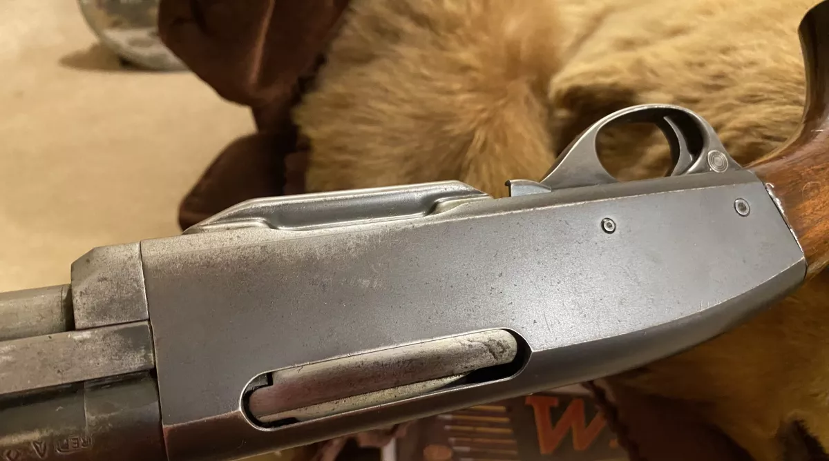 Totally serviceable ‘06 1953 Remington 760 . Bore and mechanics A1 . The blue has an underlying haze from wet conditions but NO heavy pitting ! Surface basically taking away the bright blue shine . Wood is fine . Forend has a small chip and a tight hairline crack , properly repaired , going nowhere . DT’d for scope bases . 1 mag . Mag has buddies social # engraved in it .
