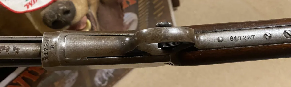 The classic 1906 gallery style pump .22 Short / L / Long rifle. C1920 . Great bore , nice ! Amount of original blue . Barrel , hammer , breach block . Thinning to plum brown on mag and receiver . Wood is very clean ! NO cracks or nonsense . Proper buttplate . Proper factory sights . Mechanics all A1 . Numbers matching. 1/2 cock is firm .