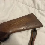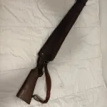 Leather sheath, brass counter, brass trigger, lever action, leather sling. Factory iron sights, beautiful wear some scuffs from being used