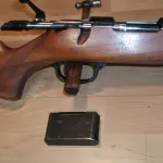Interesting bolt action from Husqvarna built with Kricos silky smooth action; classic European design and quality chambered in the accurate and useful .222 Rem. Pleasant looking walnut stock with satin oil finish, 24" barrel with excellent bluing and very good bore, 4 round detachable box mag. These Husky/Krico collaborations, while far from common, were known for accuracy, as is the .222 Rem round.