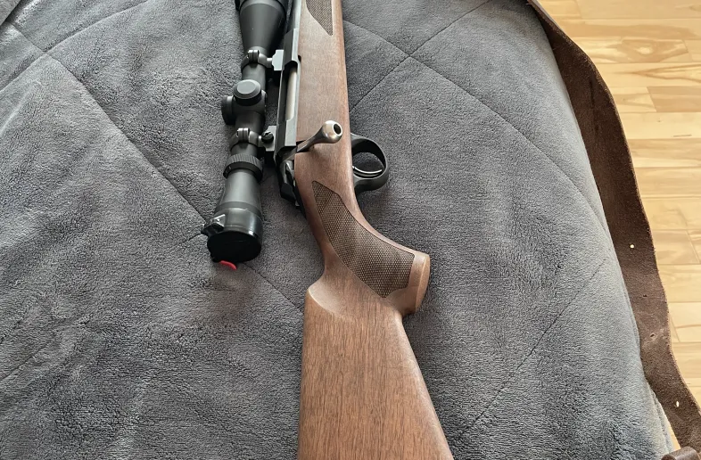 • High-grain walnut stock with classic low-angled grip