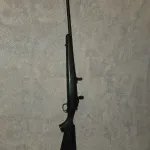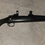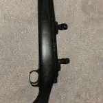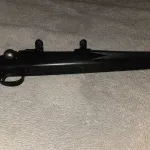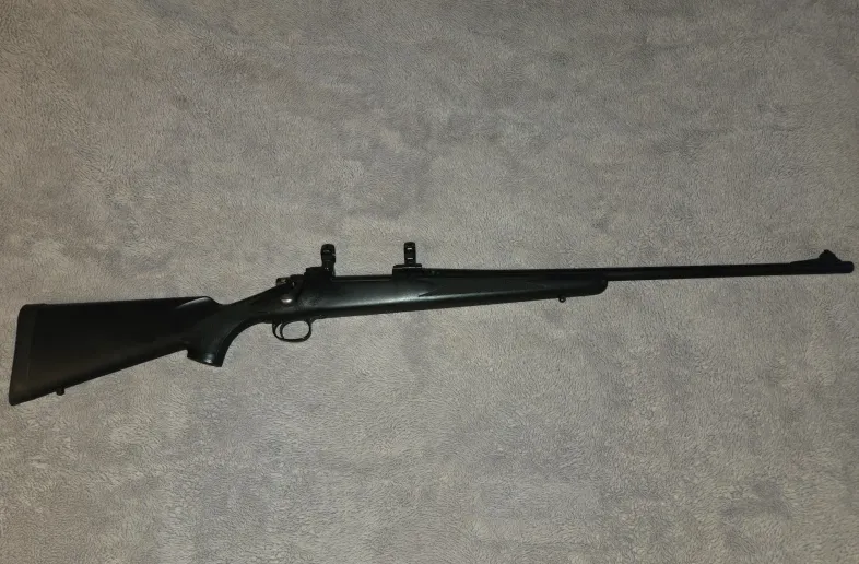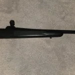 Matte black finished barrel and receiver with a few tiny use marks. Black synthetic stock with factory recoil pad.