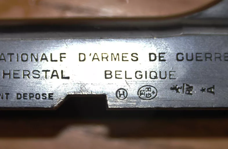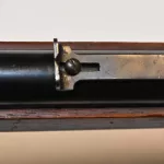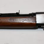 FN SEMI-AUTO 22 RIFLE in Excellent condition. This was a European model produced by Fabrique Nationale, Belgium, from 1914 to 1957 and is a top loader with a splinter forend. It has a curved shape to the bottom rear of the receiver because the earlier square shaped vrsios caused cracked stocks. This gun appears completely original and maintains 95% of all finish. There is some wear on the butt plate and some handling marks to the wooden stocks. As near as I can tel, it was made circa 1920.