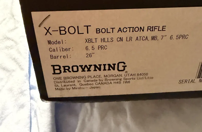 A brand new never fired 6.5 PRC X-bolt browning rifle. Camo stock. 26” barrel. Shipping not included. PAL required.