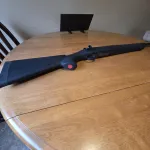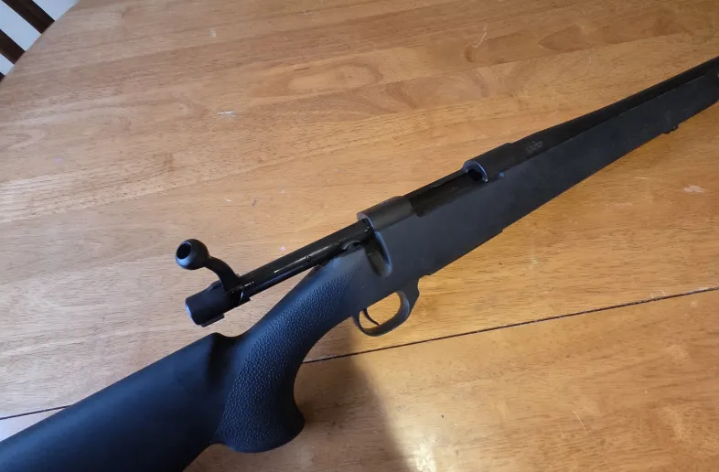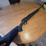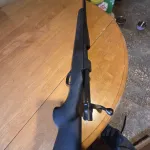 Howa 1500 243 with hoage overmold stock great gun sub moa with federal powershock 100grain only 65 to 70 rounds thru it would like something to hunt large game i once shot a grouse at 100 yards and took its head of was very impressed with this rifel but I want to move on to a bit more recoil and stoping power has 3 position saftey so you can lock the bolt from moving has adjustable trigger goes down to 1.5 pounds would consider a trade but no savage please would love a Remington 700 in 7mm rem mag or 3006